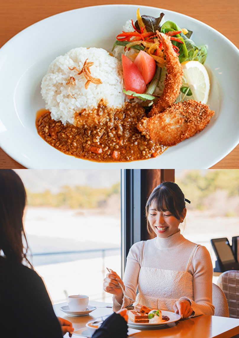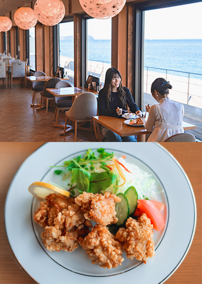 オーシャンビューのレストランで、景色とともにお食事をお楽しみいただけます。