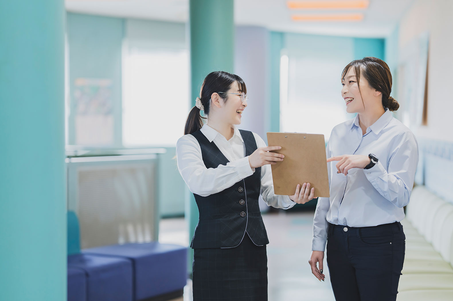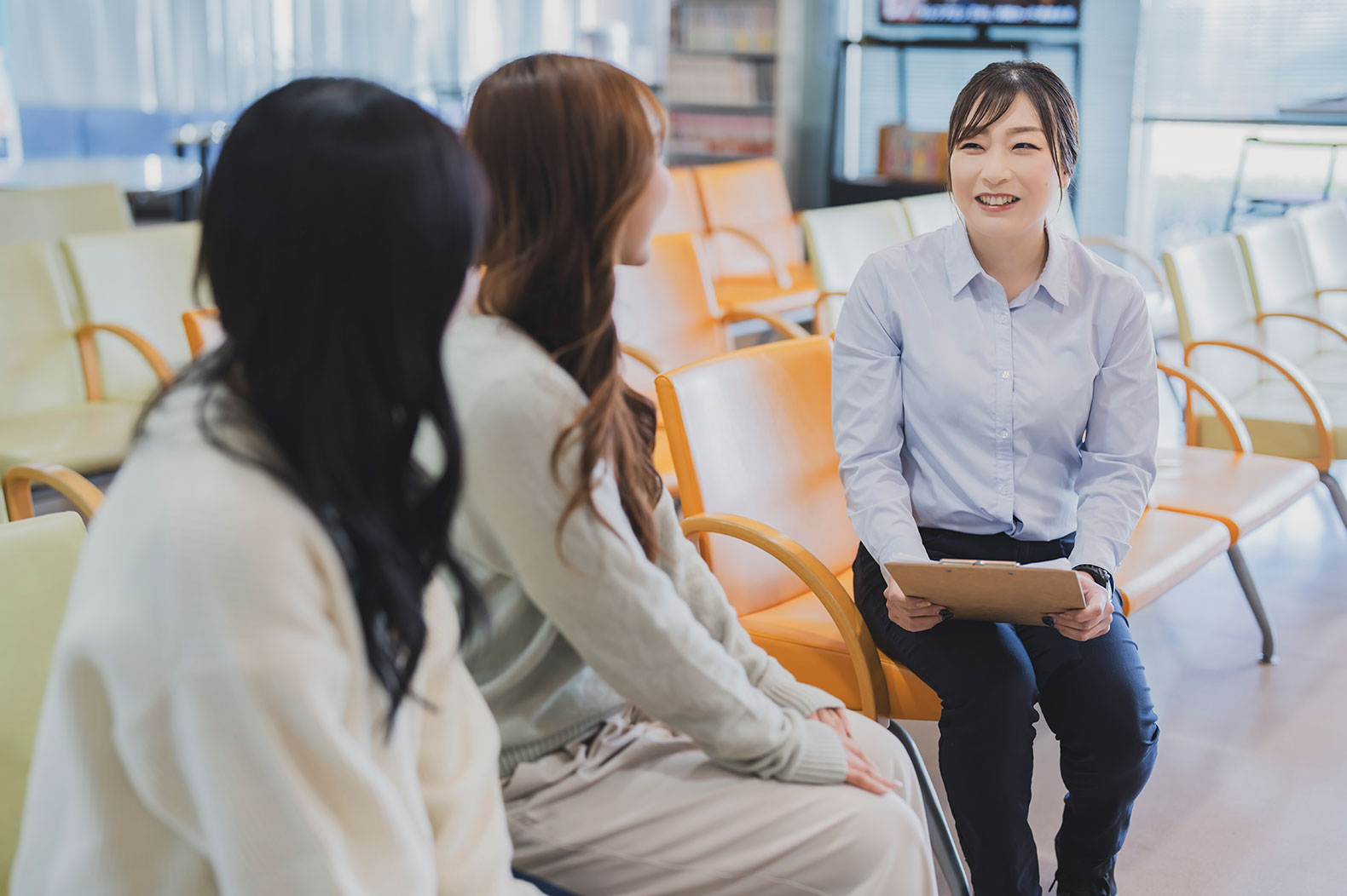明るく、にぎやか。ロビーでは教習生同士や、教習生と指導員の談笑であったり、指導員室でも会話が絶えません。
